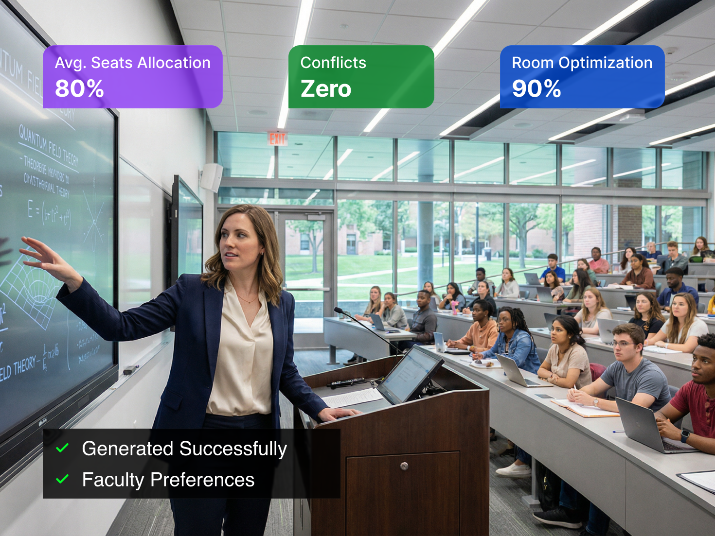 Generate conflict-free timetables in days instead of weeks. AI-powered scheduling handles faculty availability, room constraints, and student preferences automatically.