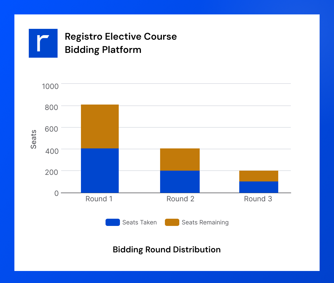 The Registro Course Bidding Software Platform provides detailed reports and analytics on bidding trends, student preferences, course demand, and allocation efficiency, helping administrators make data-driven decisions.